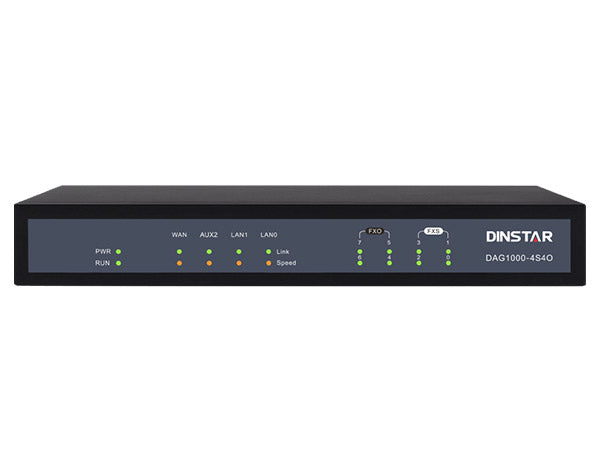 Dinstar DAG1000-4S4O is a versatile hybrid analog VoIP gateway designed to provide seamless interoperability between traditional telephony systems and IP networks at best price for small business, family offices, remote offices, and branch deployments. With 4 FXS and 4 FXO hybrid ports, SIP protocol support, IP trunk capability, and flexible routing and manipulation features, this hybrid analog VoIP gateway ensures reliable voice and fax communication while enabling smooth transition from traditional PBX systems to IP-based voice networks.