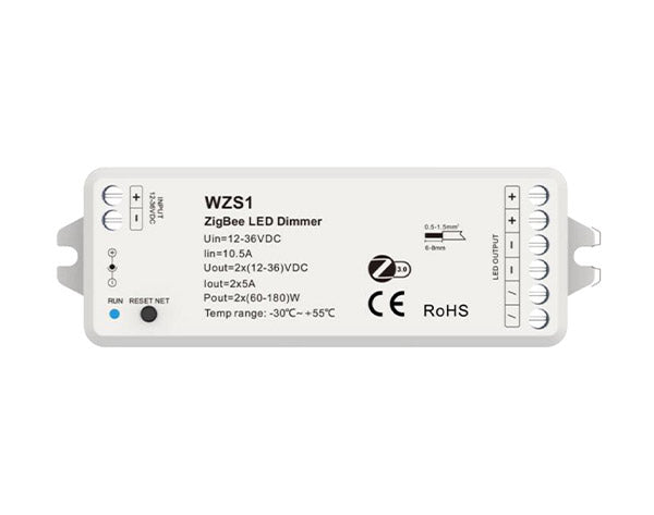 Akubela WZS1 ZigBee LED Dimmer – 2CH Constant Voltage Controller, ZigBee 3.0, PWM 4KHz, LED Strip Dimming Control