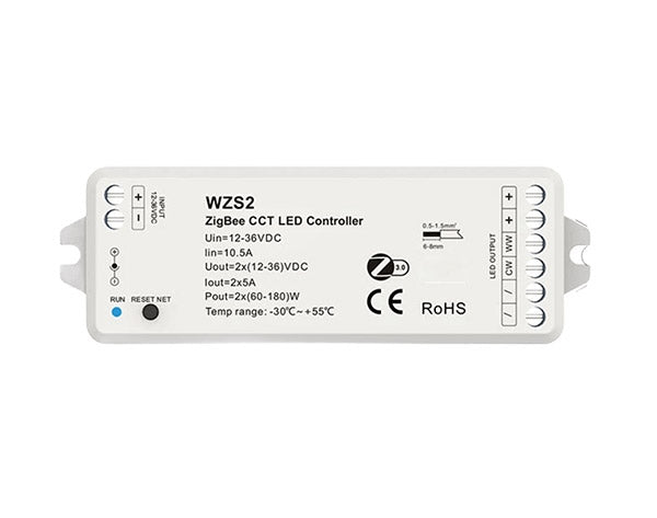 Akubela WZS2 ZigBee CCT LED Controller – 2CH Constant Voltage Dimmer, ZigBee 3.0, PWM 4KHz, CCT Strip Lighting Control