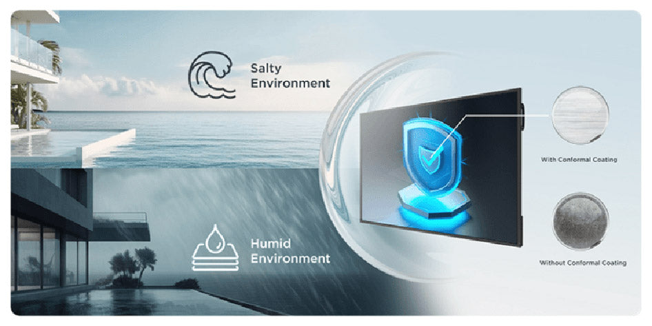 MAXHUB CMA-T ND75CMA-T is a high-brightness 75-inch commercial screen engineered for demanding business and signage environments, delivering reliable 24/7 performance at best price. Featuring a 4K UHD VA panel with an impressive 800 nits brightness level, this commercial display ensures vivid, lifelike visuals even in brightly lit spaces. Its conformal coating enhances durability by protecting internal components from dust, salt, and humidity, making it ideal for continuous commercial operation. With portrait and landscape installation support, integrated speakers, MAXHUB Share compatibility, and centralized device management through MAXHUB Pivot, the CMA-T Series provides a stable and versatile commercial display solution for professional use.